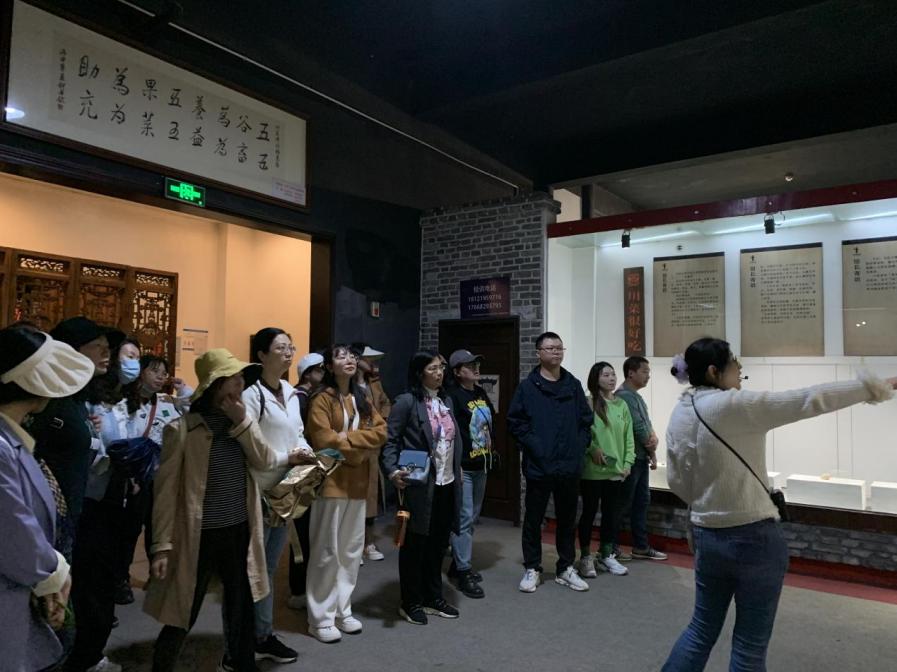 战旗村参观完毕后,党总支又驱车前往成都川菜博物馆。于2007年开馆的成都川菜博物馆占地40亩,是全国首家以菜文化为主题的活态博物馆,该博物馆目前有典藏馆、互动展示馆、原料展示区、原料工具加工展示区等区域,全面展示川菜的历史脉络与文化传承。讲解员先将大家带入典藏馆,以文物的讲解来带领大家回顾川菜的发展历程;随后将大家带往互动体验区,为大家展示了川菜宫保鸡丁的制作过程;最后将大家带往“川菜之魂”——郫县豆瓣的晾晒场,体验豆瓣的制作过程。参观结束后,总支成员还品尝了馆内二十多道传统川味小吃,全方位体验了传统川菜的魅力。
