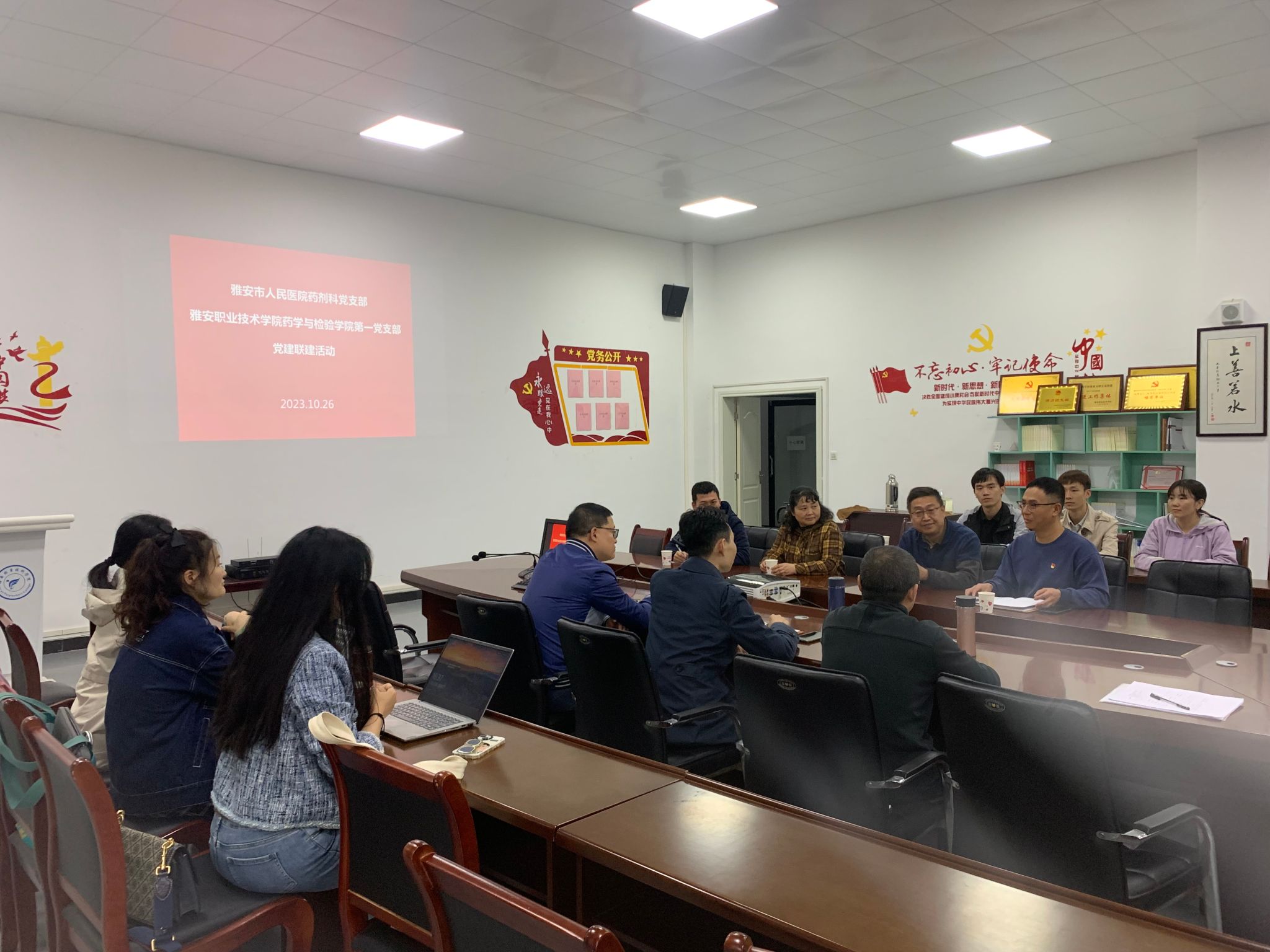 为深入贯彻落实党的二十大精神,积极探索校企合作,2023年10月26日下午,雅安市人民医院药剂科党支部来校与公司第一党支部联合开展“党建+业务”联建活动。此次党建联建活动在经开区校区云顶国际8588yd会议室举行,两支部共计15名党员同志参加。
