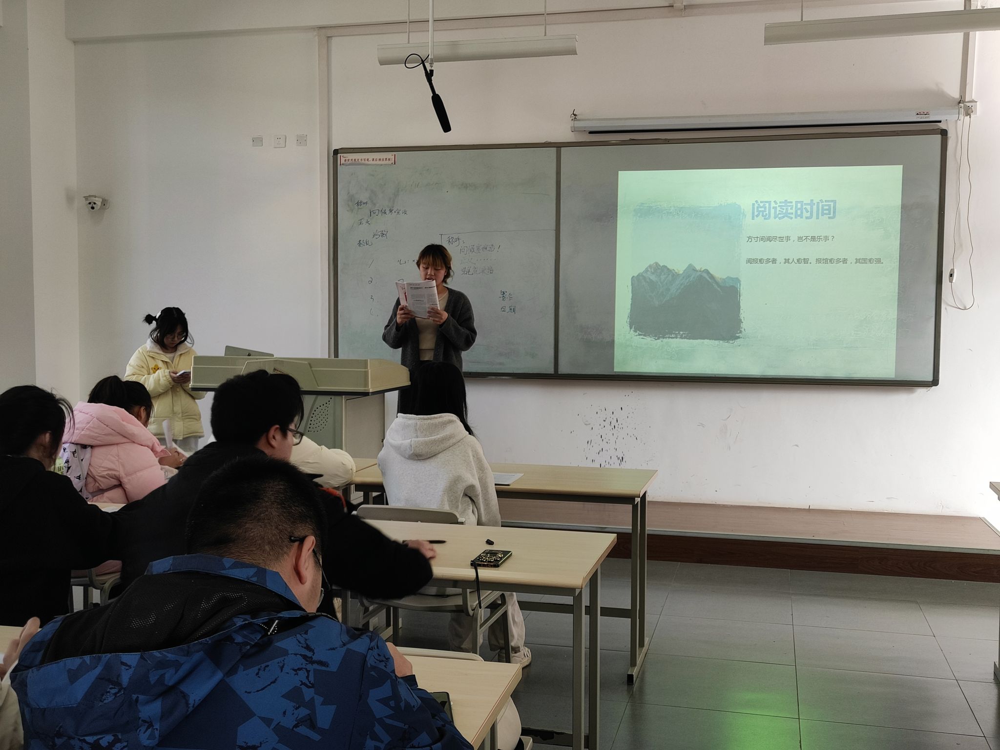 本次活动由学习部干事夏丽佳主持。活动开始,主持人带大家回望党史,分享了优秀党员的先进事迹;接着,同学们开始阅读党报,以阅读的方式切身感受党的伟大成就;阅读完毕后,主持人组织了击鼓传花等趣味小游戏,在游戏的欢声笑语中,同学们上台分享阅读感悟,在方寸之间体味书香墨韵。至此,活动圆满结束。
