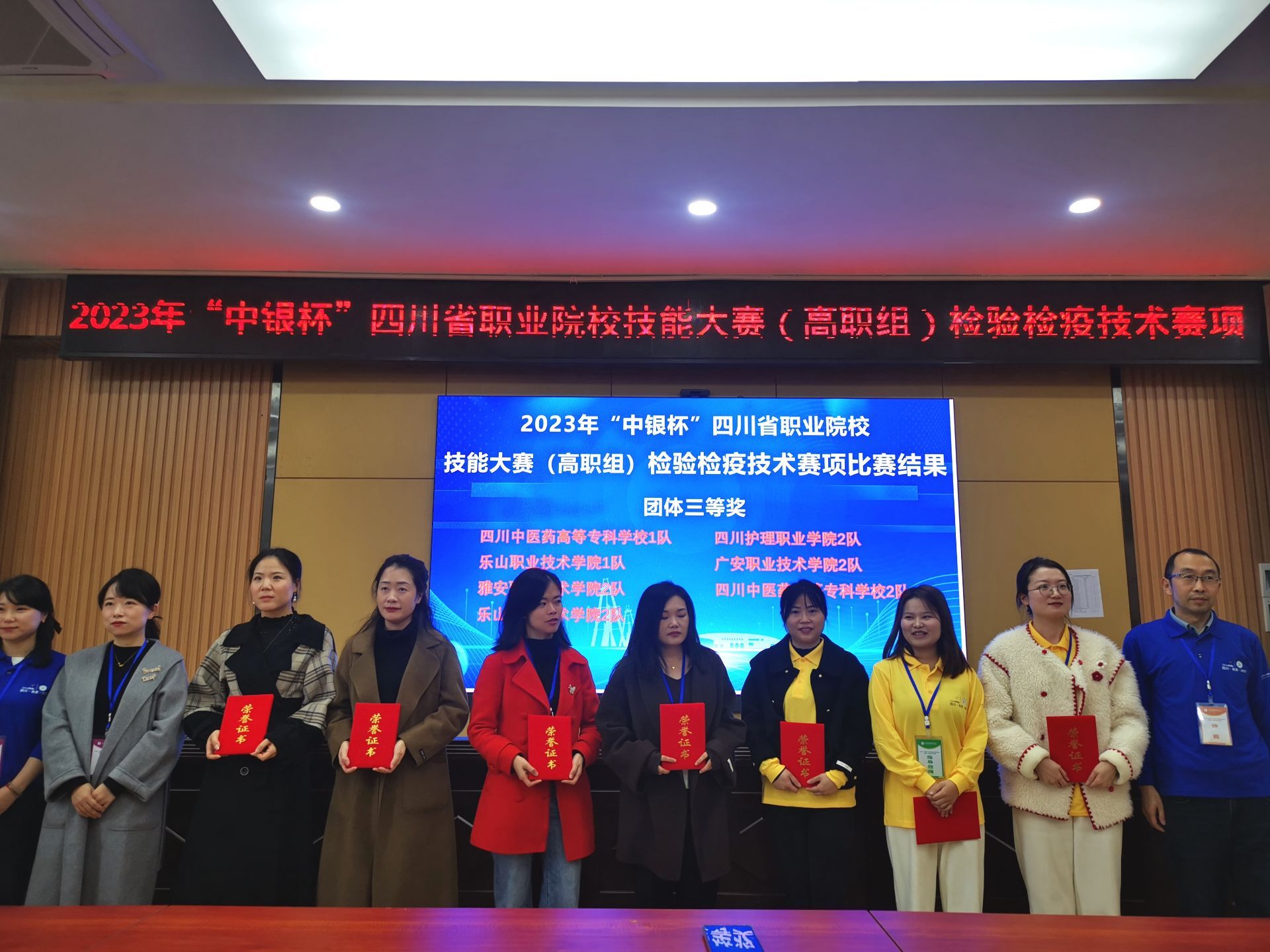 11月26日-28日,由四川省教育厅主办、四川卫生康复职业公司承办的2023年“中银杯”四川省职业院校技能大赛(高职组)检验检疫技术赛项在四川卫生康复职业公司(自贡市)举行,来自全省22支队伍参赛。经过激烈角逐,获团体二等奖、三等奖各一项。比赛过程中,陈佳、何曼瑛、吴瑞、张录美、薛佳怡、廖长春6位选手们展现了扎实的理论知识和娴熟的操作技能。