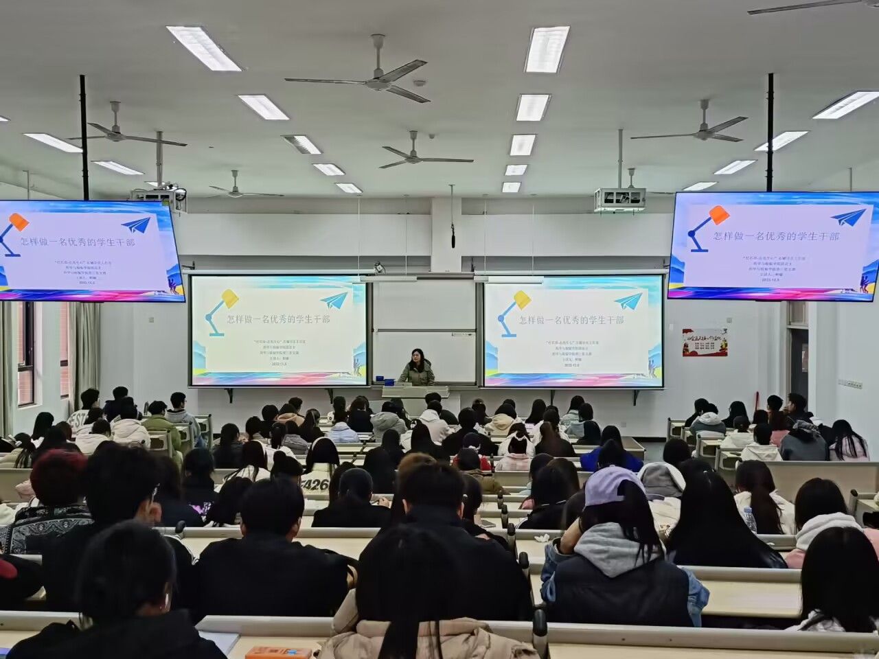 中午13点整,云顶国际8588yd辅导员工作室工作人员组织各员工干部于经开校区1205教室入座并签到。主讲老师鲜敏以PPT的形式为员工干部们从各个角度讲解员工干部的“可为与有为”。让员工干部们明晰了自身的责任义务,坚定了员工干部为同学服务的工作宗旨和理念,让他们以更加饱满的热情,昂扬的斗志投入到今后的学习和工作当中。