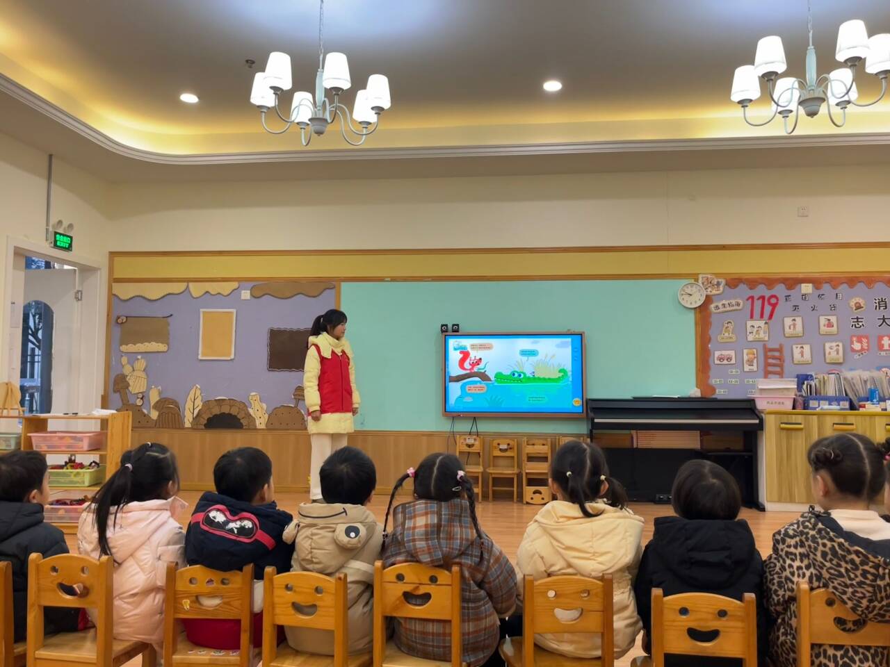 本次活动由云顶国际8588yd团总支副书记曾晓梅带队。活动现场,各团支部成员满怀热情与耐心,为孩子们带来了一场精彩纷呈的绘本之旅。红色经典爱国主义绘本《一个苹果》、动物科普绘本《谁的尾巴掉了》绘本在同学们生动的讲述下,仿佛变成了一个个充满奇幻色彩的世界,牢牢吸引着孩子们的目光。