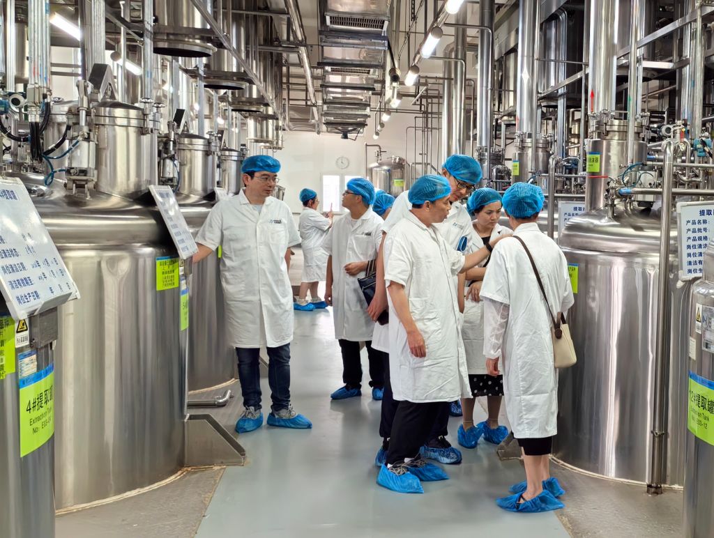 随后,工作室团队与研发创新团队共同参观了华森制药现代化中药制剂生产车间,重点了解了企业在自动化控制、智能检测、信息化管理等方面的最新应用。团队成员对生产线上的数据实时采集、流程追溯和智能物流等环节表现出浓厚兴趣,并就相关技术细节进行了深入交流。