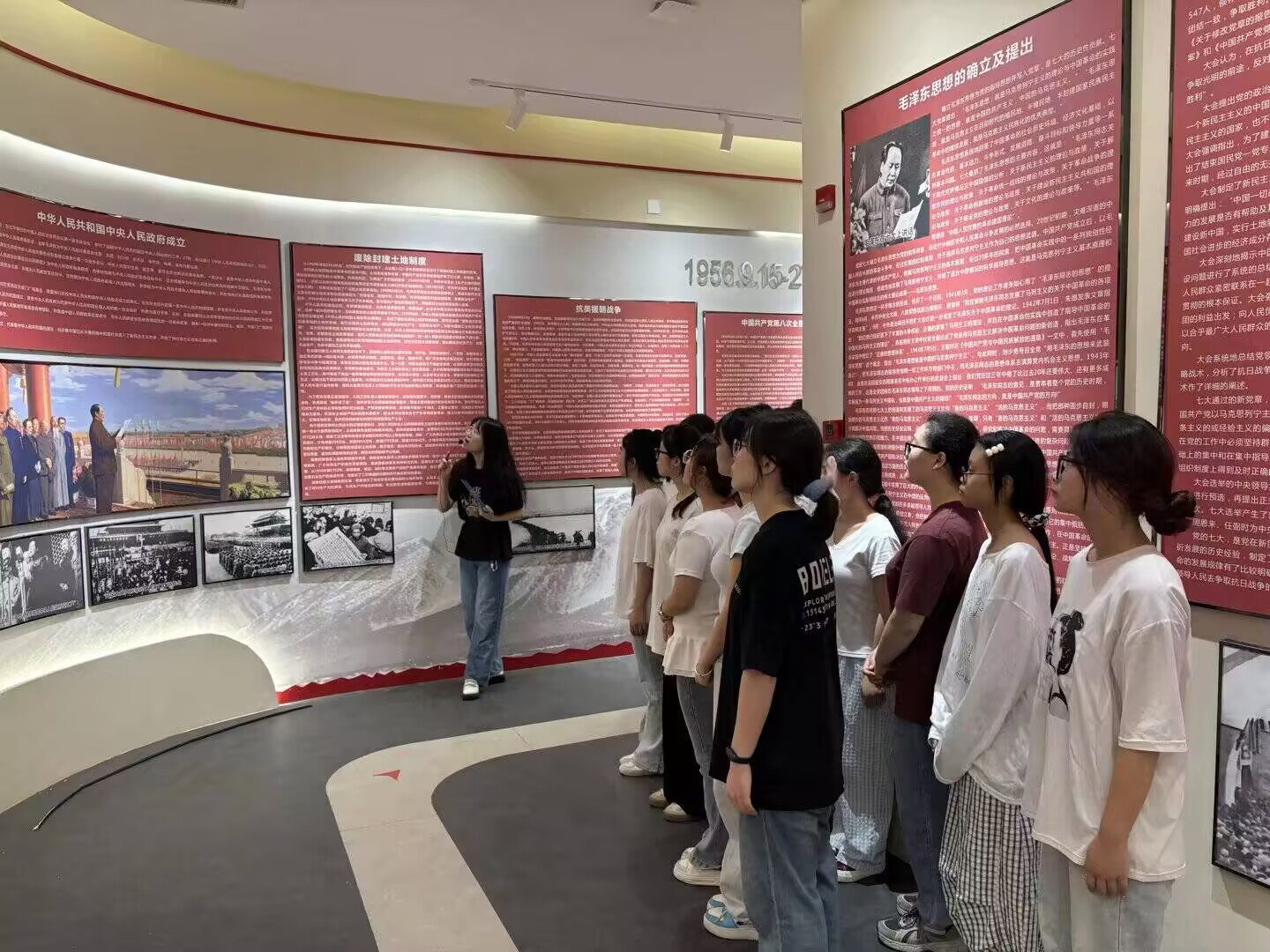 党史理论环节,讲解员匠心独运,运用“时间轴+大事件”的叙事方式,将中国共产党从艰难起步、筚路蓝缕,到逐步走向伟大复兴的辉煌历程,如同一幅波澜壮阔的历史画卷在同学们眼前徐徐展开。讲解过程中,着重剖析了“长征精神”“延安精神”等红色精神谱系的核心内涵。同学们沉浸其中,深刻领悟到革命先辈们坚定的理想信念、顽强的意志品质和无私的奉献精神,心灵受到了一次深刻的洗礼。