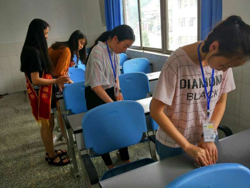 为了积极响应雅安市创建卫生城市的号召,发扬志愿者乐于奉献的传统精神,发挥入党积极分子的先锋模范带头作用,创造一个优美整洁的学习环境。2016年5月31号下午,药学检验系党支部组织入党积极分子、预备党员和员工会部分干事共计30余人,一起清洁了青年路校区的A、B、C栋教室的桌面和墙面涂鸦。