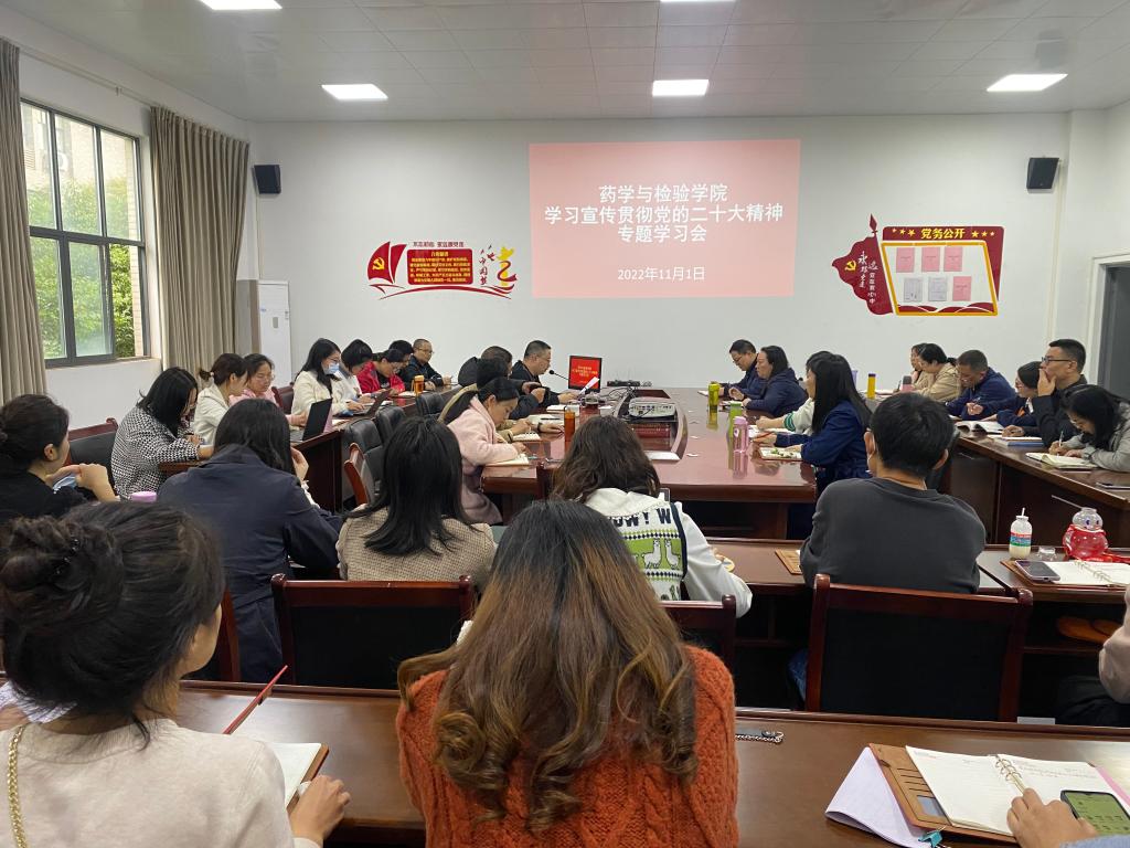 11月1日,药学与检验公司党总支在经开区校区云顶国际8588yd大会议室召开党总支大会组织开展党总支书记讲党课活动,由王伟才同志领学讲解党的二十大精神。