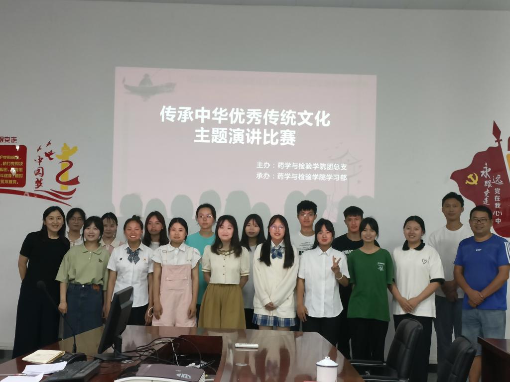 大赛由初赛和决赛两个部分组成,初赛之后最终有17名优秀的同学进入了决赛。学习部成员到达食品楼签到后,便组织参赛选手按照签到顺序准备演讲。现场评委团由杨伍哈、何群、石佳冬、唐慧敏、曾晓梅几位老师组成。决赛中同学们紧紧围绕着“传承中华优秀传统文化”的主题,以真挚的情感和生动的语言搭配上悠扬的背景音乐和精美的PPT,讲述了对优秀文化的热爱以及传承优秀文化的重要性和自己的责任担当,赢得了现场评委和同学们的掌声与赞许。比赛中,医检22-1班何娟以饱满的情感,抑扬顿挫的语调向大家讲述了辨明网络文学,传承传统文化的重要性,引起了大家的共鸣,力拔头筹,成为本次比赛冠军。比赛结束后,所有在场人员合影留念,并评出一等奖1名、二等奖2名、三等奖3名,对获奖选手颁发了奖状,以示鼓励。