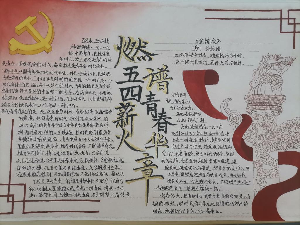 此次活动以创作为动力,促使同学们进一步学习和领会了五四精神,将个人梦和中国梦相结合,担负起自己的使命与责任,为实现自己的青春梦想而努力奋斗。同时同学们提供了展示才华的舞台, 增强了团队凝聚力和集体荣誉感。