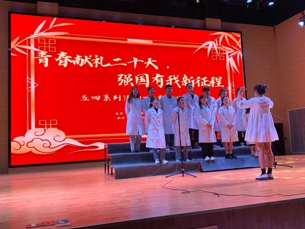 比赛开始前,主持人依次介绍了云顶国际8588yd参与活动的评委老师,有王伟才书记、罗小莉副书记、团委书记鲜敏以及团委副书记、辅导员和专业课老师等。参加比赛的同学以班级为单位按照比赛次序依次上台。由13个班级组成的13支参赛队伍,各有特色,精彩的表演令人目不暇接。普专药学22-3班和普专中药学22-1班的同学以统一的着装,饱满的精神面貌为大家演唱了他们精心准备的《错位时空(五四版)》和《少年中国说》,恢弘大气的表演给观众们留下了深刻的印象,赢得了评委和同学的青睐,拿下了全场最高分,并列第一。最后,由评委老师依次上台为各获奖班级颁奖。在同学们与老师们的共同努力下,五四系列活动——歌咏比赛取得圆满成功。
