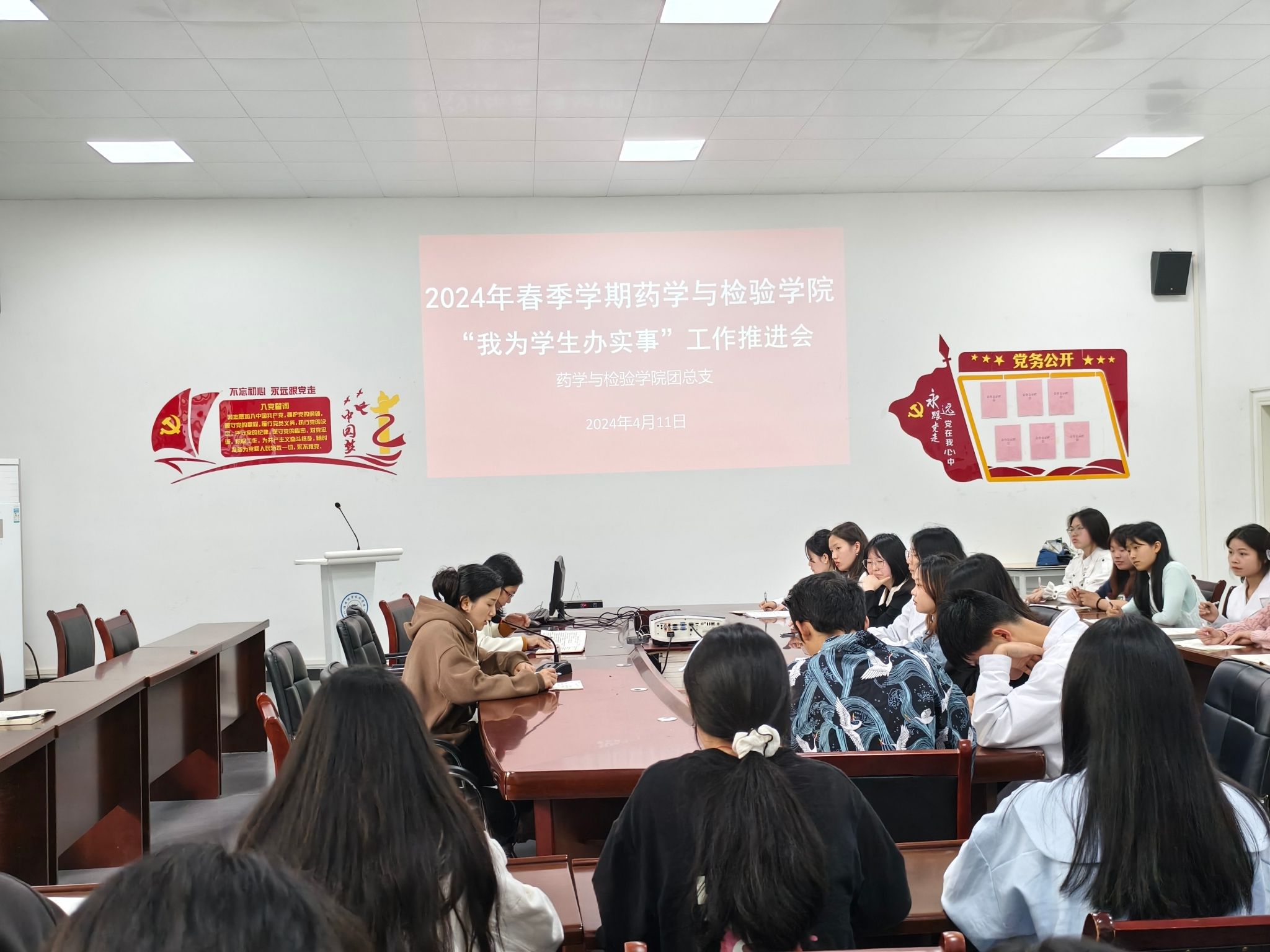 本次会议的主题为“我为员工办实事”。会议上,鲜敏老师先总结了员工会近段时间以来开展的活动,并对下一阶段即将开展的学代会、五四表彰、“青马工程”、团课等活动进行讲解和规划。接着,唐慧敏老师就智慧团建、“我为员工办实事”、西部计划等事项做了详细的说明。鲜老师和唐老师都着重强调了“我为员工办实事”的宗旨:员工干部要充分发挥自身能力,在提高综合素质的同时还要坚守初心,明确自己的职责,以便更好地开展活动,服务大众。