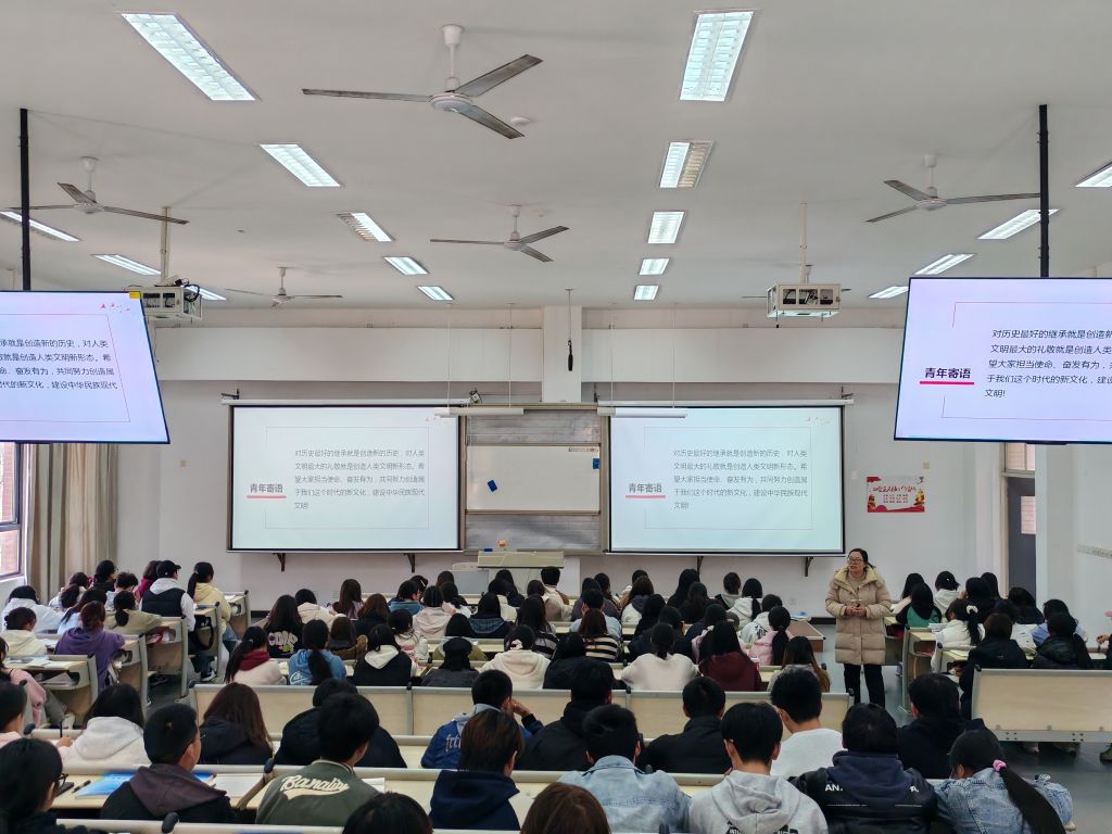 活动开始,陈静老师带领同学们回顾了习近平总书记在文化传承发展座谈会上的重要讲话内容。从中华文明具有的突出特性,到“两个结合”的重大意义,再到在新的历史起点上继续推动文化繁荣、建设文化强国、建设中华民族现代文明的重要要求,陈老师结合案例,进行了深入浅出的讲解,同学们认真聆听,深刻领会其蕴含的丰富内涵和精神实质。在交流讨论环节,同学们结合自身学习和生活实际,踊跃发言,分享自己的学习心得和体会。