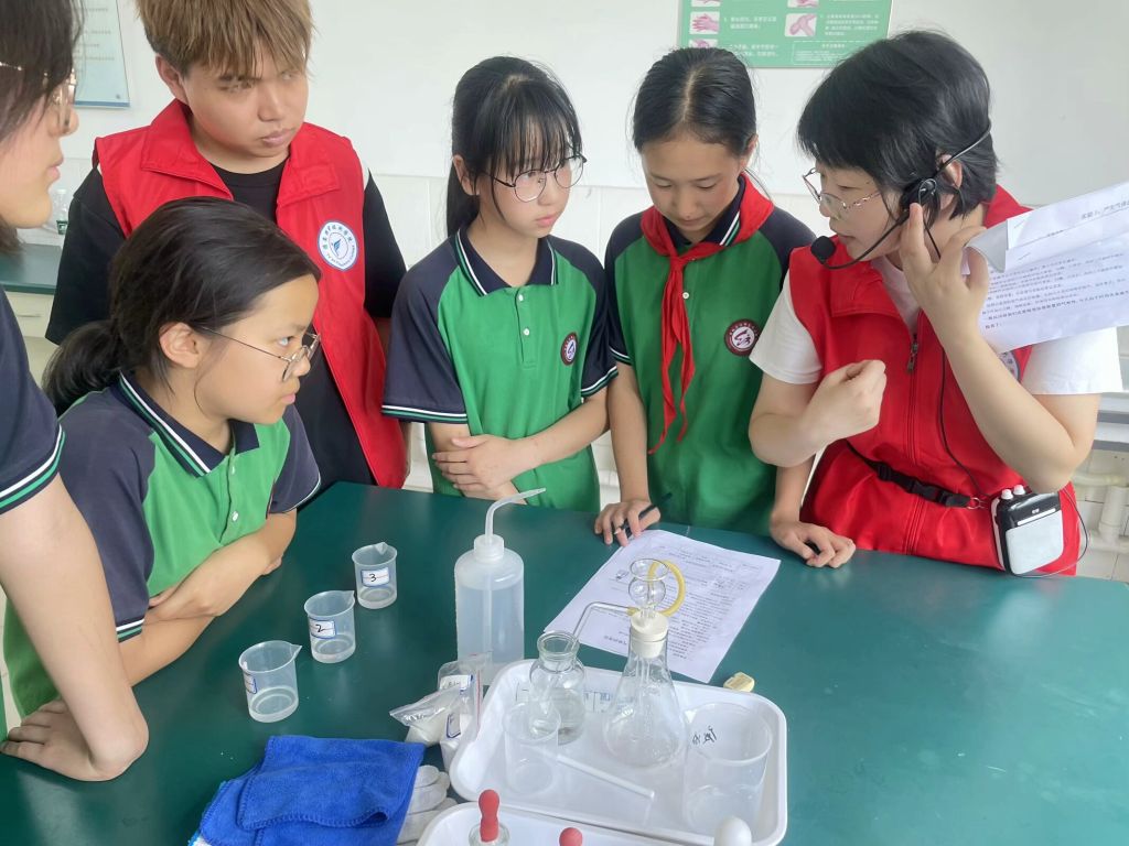 2025年6月17日和19日,云顶国际8588yd药学与中药学教研室和化学与分析教研室对雅安市雨城区汉碑慈济小学六年级4个班200人,开展“大手牵小手,科学向前走”科学实验课科普活动。