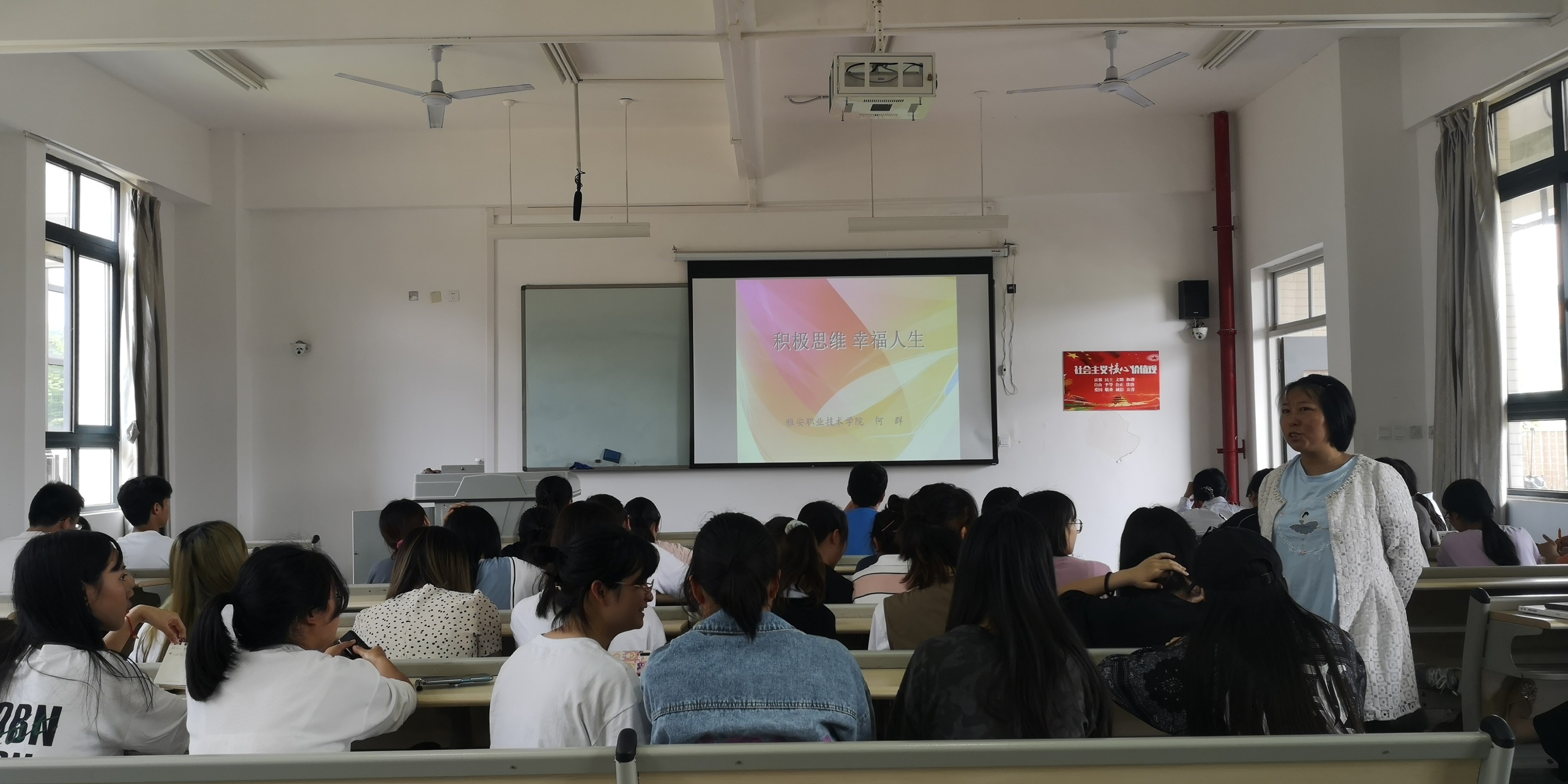 为了提高同学们的心理素质,树立正确的心理健康观,掌握实用的心态调节方法,以良好的精神状态投入到学习与生活当中。5月25日中午13:00,云顶国际8588yd在1204教室举办由何群老师主讲的《积极思维,美好人生》的专题讲座,共100余名同学参加。