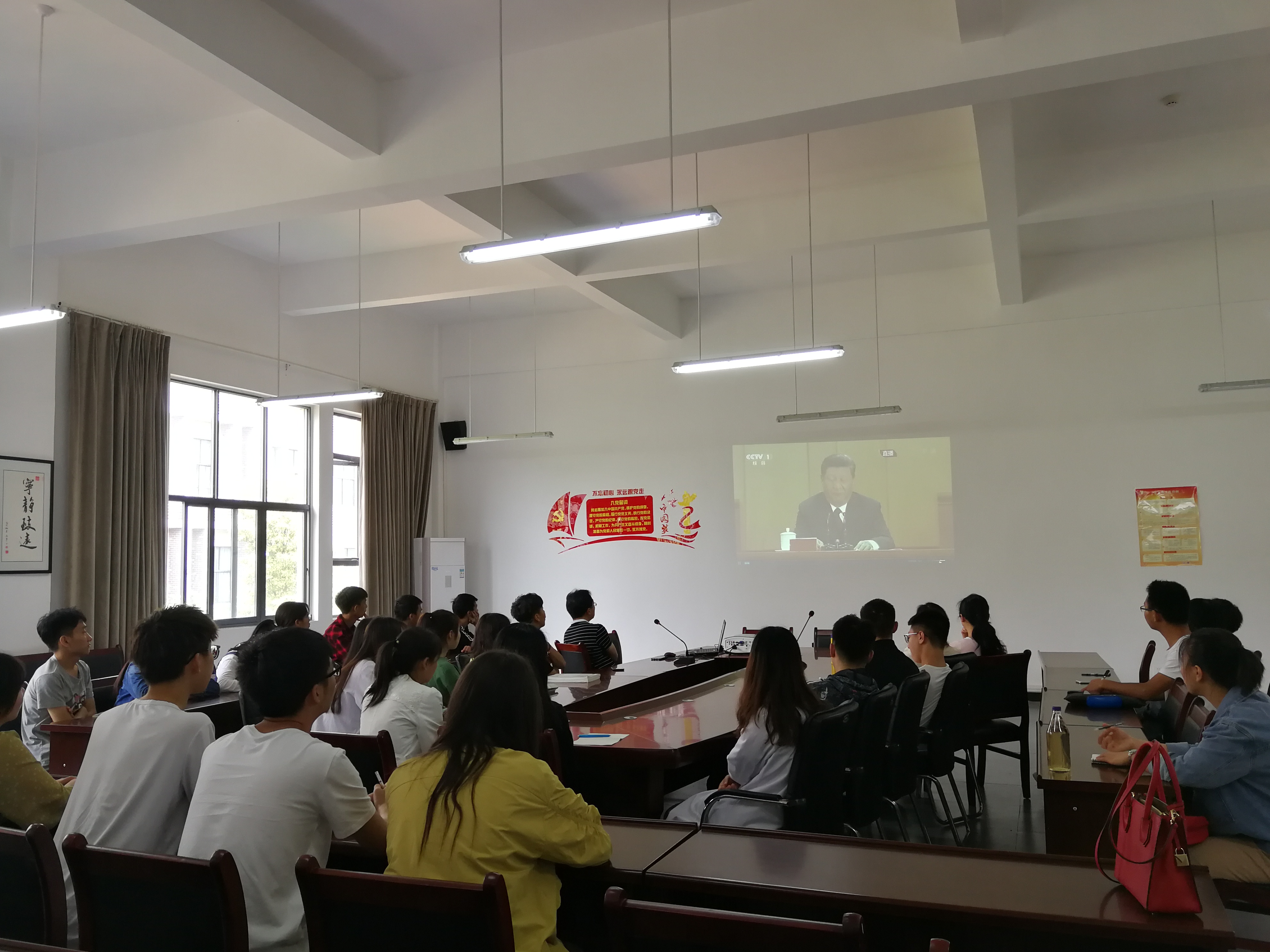 纪念五四运动100周年大会4月30日上午10时30分在人民大会堂举行。中共中央总书记、国家主席、中央军委主席习近平将出席大会并发表重要讲话。为了学习会议精神,加强党员、团干部、团员、青年员工的思想政治教育工作,4月30日10:20,云顶国际8588yd团总支在党总支的带领下,组织了党员教师、员工入党积极分子代表、团员团干代表、青年代表共计40余人,在经开区实训与服务中心校区食品药品生产实训基地205会议室观看了《纪念五四运动100周年大会》直播。