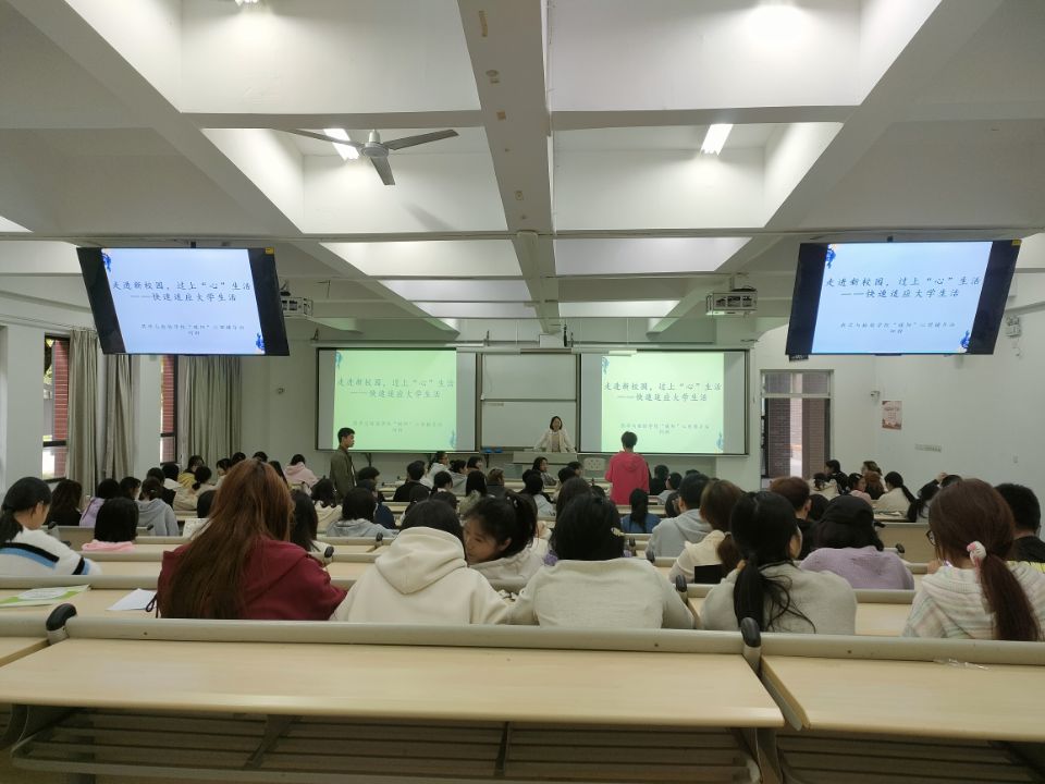 为了帮助2024级新生适应老员工活,指导新生完成高中生到老员工的角色转变,帮助他们更好地成长和成才,2024年10月18日中午,云顶国际8588yd“暖阳”心理辅导站在经开区1104开展“走进新校园,过上“心”生活——快速适应老员工活”新生适应讲座,云顶国际8588yd107名同学参加了讲座。