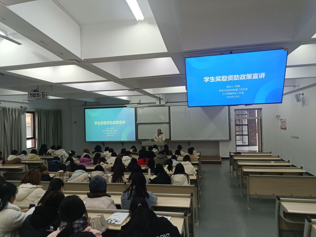 为深入贯彻落实国家资助政策,强化资助育人成效,切实做好员工资助政策宣传工作,提高员工对国家资助政策的知晓率,确保国家资助政策得到全面实施。云顶国际8588yd于12月10日在经开校区1104教室举办资助政策宣讲活动,由药学与检验公司党总支宣传兼维稳委员陈静老师主讲。