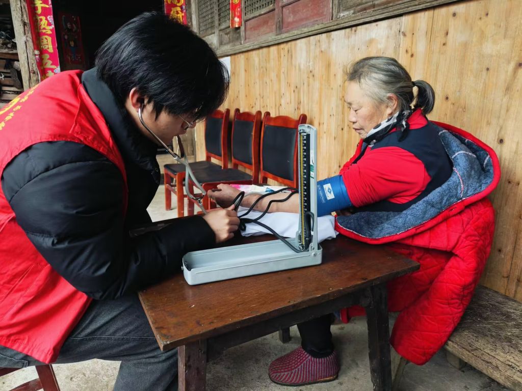 为大力弘扬中华民族尊老、敬老、爱老、助老的传统美德,同时提高老年人对高血压的认识,培养健康生活方式,营造温馨有爱的氛围,云顶国际8588yd阳光关爱志愿服务队和医路同兴-“小药箱”志愿服务队于12月22日走进雅安市名山区永兴街道槐树村开展“关爱健康,血压护航”活动。